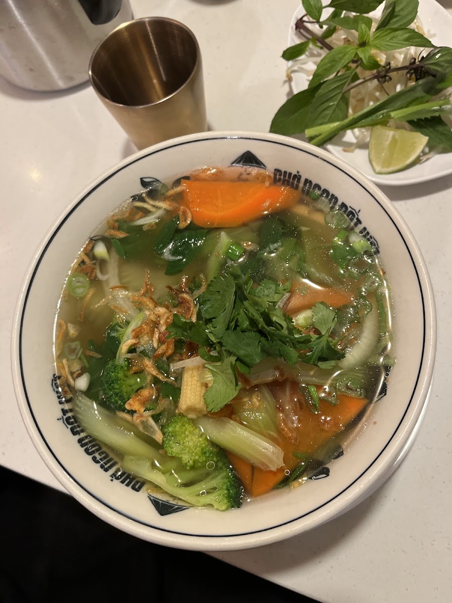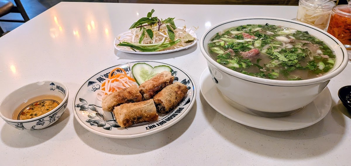 the food was great! The portion is super huge. The staffs are so so nice. They were playing music and I asked them if we can customize the song list and they gave the tv remote to us. It was pretty late so the store was quiet but then it’s super chill and relax. It’s a hideaway from bustling downtown and enjoy a bowl of phở!