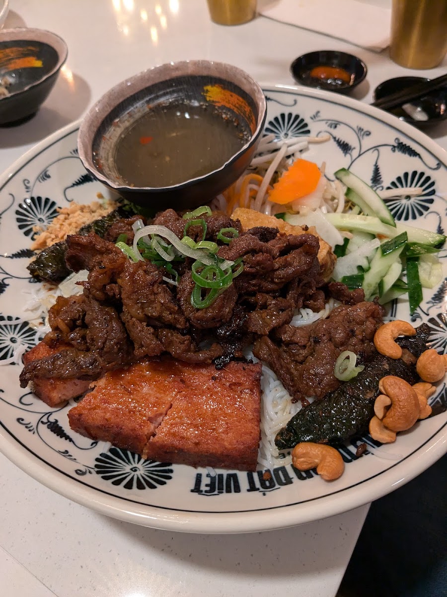 Everything on point! As a Vietnamese, I’m proud to have this place with my name in it! I got the special vermicelli noodles with grilled pork, spring rolls(perfectly crispy ), grilled pork sausage, beef roll w/ herb leaves. Amazing combination and GIANT portion! It was a pleasant Toronto day so I had to combine with an iced coffee. A must-try if you want authentic Vietnamese food If I’m back in the area, I will definitely stop by again!!!